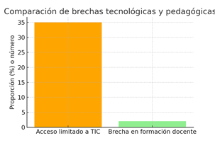 El an lisis comparativo de las dos realidades revela que las disparidades tecnol gicas y pedag gicas se refuerzan mutuamente: los estudiantes presentan un acceso restringido a dispositivos y conectividad, mientras que los docentes carecen de formaci n espec fica en competencias digitales; esta interacci n produce un obst culo persistente a la inclusi n digital total (v ase figura 3).