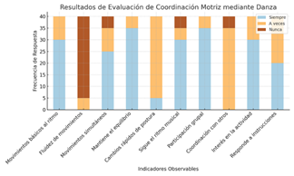 Figura 1. Resultados de la evaluación de coordinación motriz mediante danza.