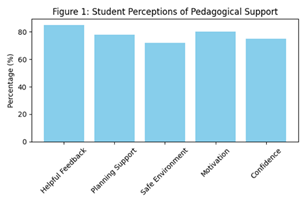 Valuing Teacher Support: The students need for progressive, teacher-led support when producing more formal, academic-style writing in English was noted. Individualized feedback, with the use of explanations and examples in addition to the guidance received in planning the texts, significantly improved the clarity and organization of their writing. One student stated, I have several ideas to write about, and I don t usually organize them coherently, but thanks to my teacher s explanations on how to begin and revise, I feel confident and empowered to produce higher-level writing. This category, shown in Figure 1, demonstrates the generation of self-confidence and motivation when personalized pedagogical support is provided.