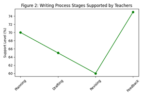 Teachers and students acknowledged that academic writing should be taught as a process involving planning, drafting, and revising. Teachers who scaffolded writing stages observed improvements in coherence and depth. |
