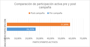 Figura 1. Comparación de participación activa pre y post campaña