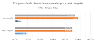 Figura 2. Comparación de niveles de compromiso pre y post campaña