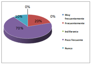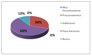 En la siguiente imagen se observa que el 60% de los encuestados sostiene que una correcta coordinaci n culo-manual es infrecuente en los ni os, mientras que el 30% indica que se presenta de forma circunstancial y el 10% refiere que nunca se observa. Esta resoluci n indica que, seg n la percepci n de la mayor a de los entrenadores, la mencionada capacidad es cr tica en m ltiples facetas del juego y, a la vez, que los j venes futbolistas no la exhiben habitualmente (ver figura 2).